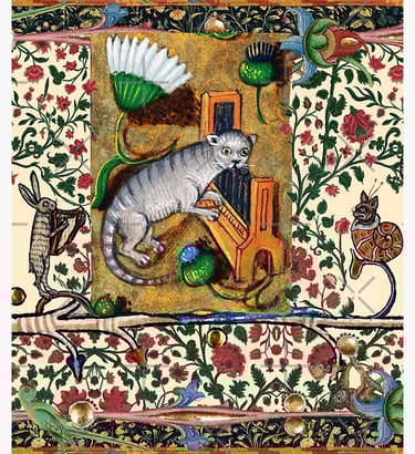 Grisou, le chat d'Armand, jouant de l'orgue en son absence, Xve siècle